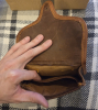 Biete hier eine kleine Pulvertasche aus echtem Leder an, diese kann am Gürtel befestigt werden. Die Tasche hat zwei Fächer innen. Die Tasche ist kaum gebraucht und weist keine großen Gebrauchsspuren auf.
