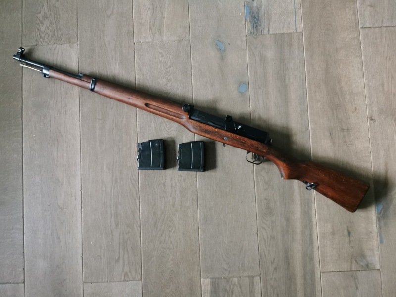 Zum Verkauf kommt ein Ljungmann AG42 B im Kaliber 6,5x55 mit 2 Magazinen. Die Waffe befindet sich in einem dem Alter entsprechend guten Zustand. Der Schaft läßt sich nur mit etwas mehr Aufwand entfernen, da die Waffe mal zum Einzellader umgerüstet war. Da aber nur ein Schweißpunkt im Magazinkasten vorhanden war, hat man nur diesen entfernt, dass das Magazin wieder eingeführt werden kann.