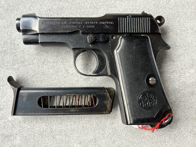 Pistole P.Beretta Modell 1934 Kaliber 9mm Kurz. Herstellungsjahr 1941. Schöner Original Zustand,kein Rost. Lauf blank. Nummerngleich. Griffschalen ohne Risse. Original Magazin. Das rötlich am Magazin ist kein Rost, sondern Depotfett. Pistole stammt aus einer Sammlung, wird im Kundenauftrag verkauft. Differenzbesteuerung. Alle Angaben nach bestem Wissen und Gewissen. "Beantworte keine E-Mails". Den beschriebenen Zustand entnehmen Sie bitte aus den Bildern. Internationaler Versand ist nur möglich, wenn Sie mir Ihren deutschen Waffenhändler nennen, der den Waffenexport für Sie übernimmt.