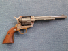 Sicherheitshalber schreibe ich "leichte Gebrauchsspuren", doch wie Sie den Bildern entnehmen können, ist der Revolver in sehr gutem Zustand und nach Aussage des Vorbesitzers unbeschossen. Es handelt sich um einen Texas Scout Army 1873 mit der frühen PTB 189. HS Mod. 121 B, Cal.9mm Knall von H. Schmidt, Ostheim/Rhoen.