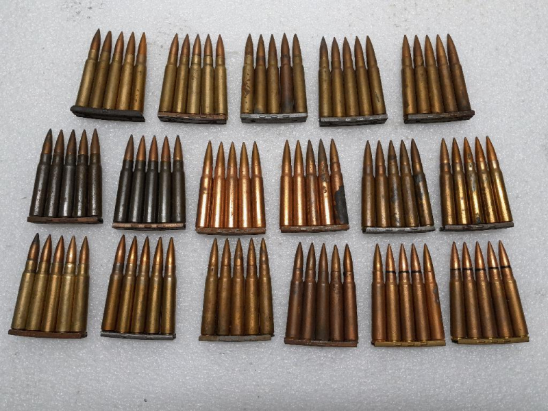 Zum Verkauf kommen insgesamt 85 Schuss verteilt auf 17 Ladestreifen in 8mm 8x57 8 x 57 JS Munition verschiedenster Hersteller und Fertigungsjahre wie auf Foto abgebildet. Einige Patronen sind schon etwas angelaufen, Patina, Wachsreste etc. Pro Ladestreifen Munition identisch. Genaues Alter unbekannt, selber schon vor mind. 10 Jahren gekauft als Konvolut in Verbindung mit einem K98 aus Jägerhand. Achtung, die Patronen haben keinerlei Umverpackung. Hatte bei einem vergangen Munitionsverkauf nur Ärger mit Versenderfirma, daher kein Versand mehr, Anschreiben und "Bitte Bitte" zwecklos. Nur an Selbstabholer und Barzahler. Vorab möchte ich eine Kopie des Personalausweises, Jagdschein oder WBK oder Munitionserwerbschein. In einer anderen Auktion laufen noch 130 Schuß 8x57 Jagdpatronen.