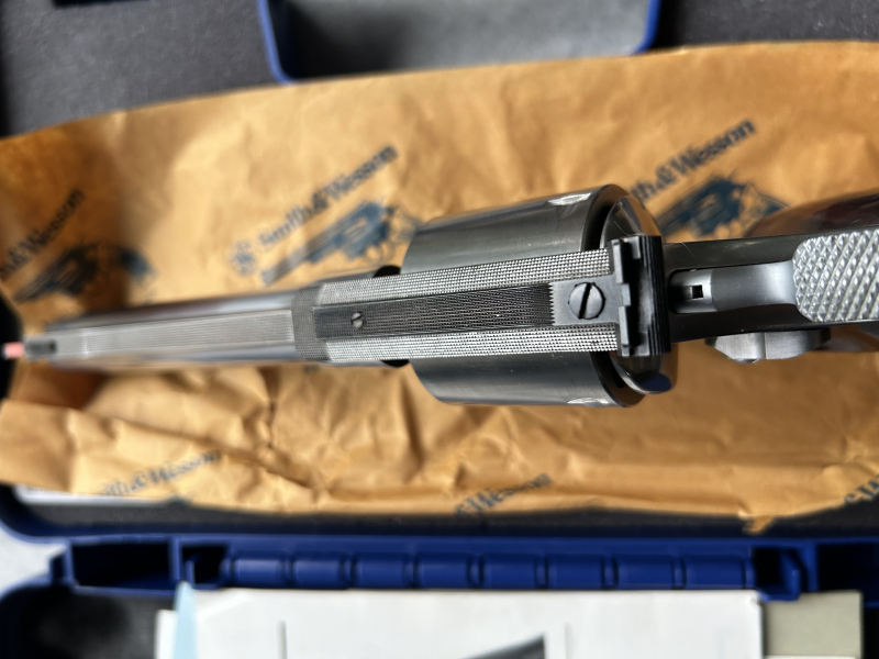 Revolver Modell Smith & Wesson Mod. 627, Kaliber .357 Magnum. Zustand wie Neu, wurde wohl nur der Beschussprüfung getestet. Magazinkapazität 6 Schuss. Lauflänge 5 1/2 Zoll. Gesamtlänge ca. 265 mm. Gewicht (ungeladen) ca. 1375 g. Abzug SA/DA. Abzugsgewicht Single Action: ca. 1,35 kg. Visierung verstellbar in Höhen und Seite. Korn mit rotem Einsatz. Lieferumfang gehört der Original Koffer, Bedienungsanleitung und die Produktbeschreibungen. Der .357 Magnum Smith & Wesson Edelstahl Revolver auf Basis des eigentlich für .44 Magnum eingesetzten N-Rahmens. "Ungeflutete" Trommel. Lauf blank. Schöne Holzgriffschalen mit S&W Medallion. Waffe wird im Kundenauftrag verkauft. Differenzbesteuerung. Alle Angaben nach bestem Wissen und Gewissen. "Beantworte keine E-Mails". Den beschriebenen Zustand entnehmen Sie bitte aus den Bildern. Internationaler Versand ist nur möglich, wenn Sie mir Ihren deutschen Waffenhändler nennen, der den Waffenexport für Sie übernimmt.