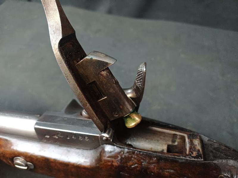 Das Gewehr ist insgesamt in sehr gutem Zustand. Der Piston ist frei und der Hahn rastet sauber in Lade- und Spannrast ein. Auf Anfrage kann eine Anleitung zum Patronenbau mitgegeben werden. Von diesem Modell wurden für den Portugalkontrakt nur 2.000 Stück hergestellt.