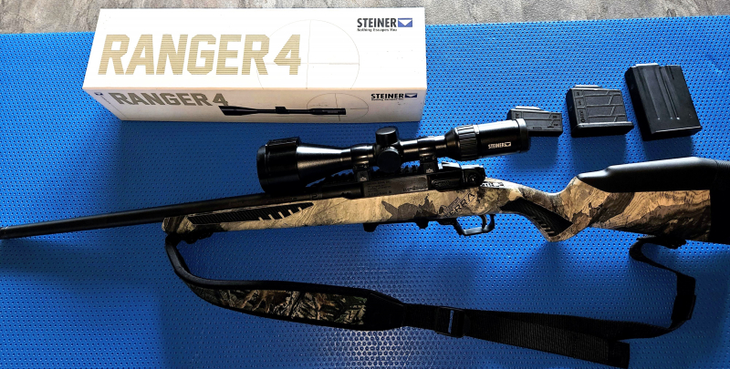 Montiert und eingeschossen (100Meter Fleck) ist ein ZF Steiner Ranger 4, 2,5-10*50 (Absehen 4A-I) montiert auf eine EAW Blue LIne Montage. Auf dem ZF ist ein "Präziser Jagen" Adapter zur Aufnahme von Vorsatzgeräten montiert. Die Waffe hat ein Mündungsgewinde 5/8-24 UNEF und den Savage bekannten ACCU-Trigger Abzug. Der Abzug bricht trocken bei ca. 1000gr. Tragriemen ist mit dabei.