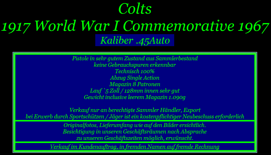 Colt 1911 1917 Word War I Commemorative 1967 Kaliber .45Auto