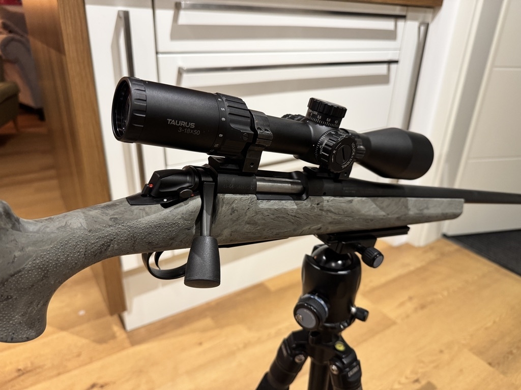 Montiert ist ein Vector Taurus 3-18x50. Die Waffe schiesst mit 60gr Interlock Geschossen auf ein 2€ Stück. Schussbelastung <100 Schuss