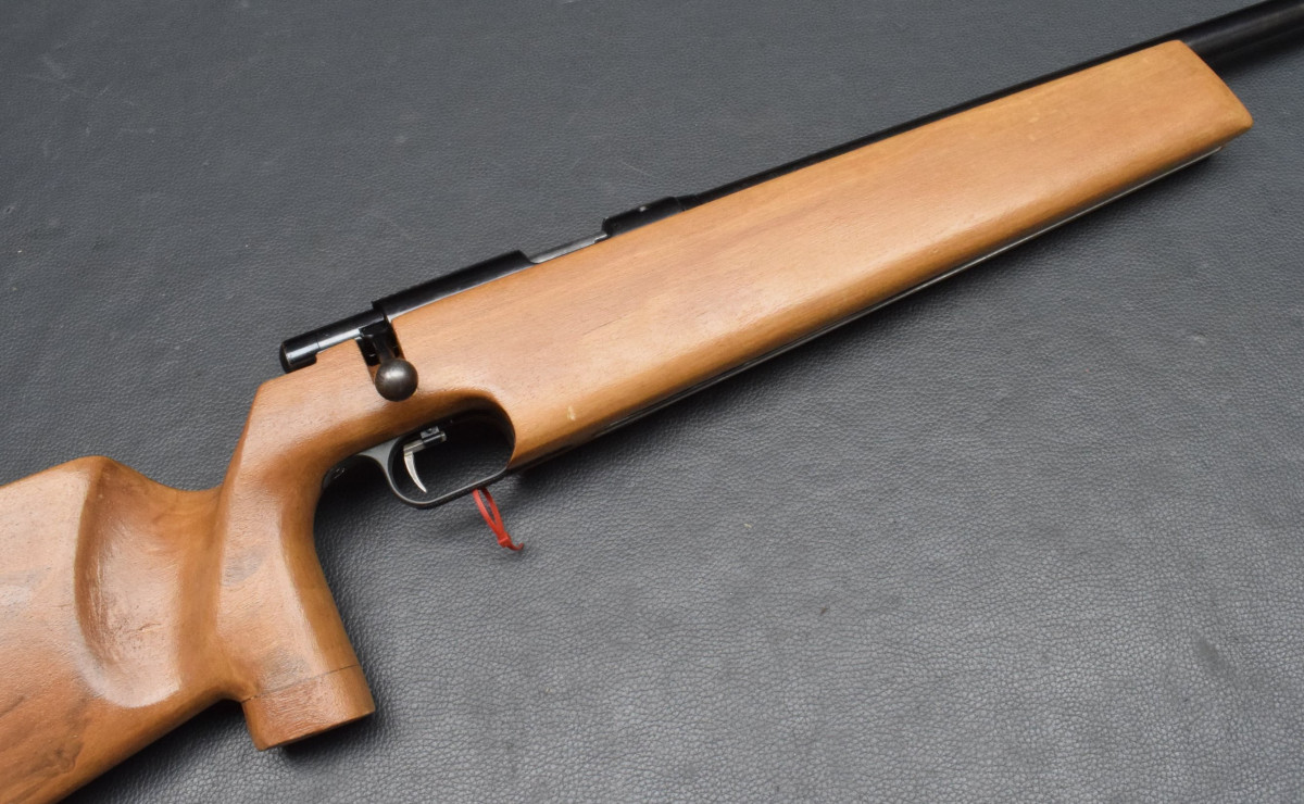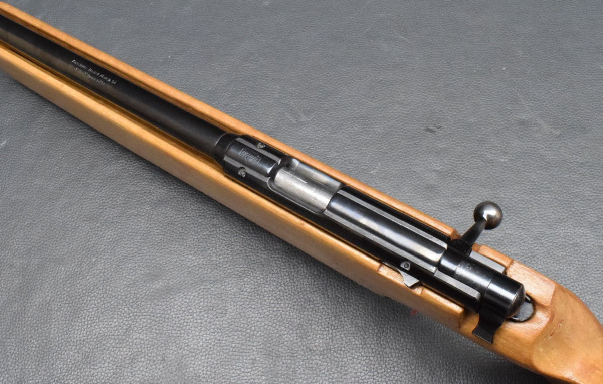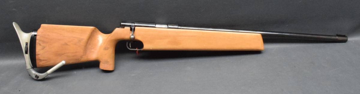 23 mm dicker Matchlauf, Korntunnel halter, 11 mm Schiene, Zylinderverschluss mit Flügelsicherung, einstellbarer Matchabzug. Buchenschaft mit verstellbarer Schaftkappe, 11mm UIT Schiene. Lauf sehr gut, Brünierung 98%, Schaft gut Gebrauchtwaffe, gut