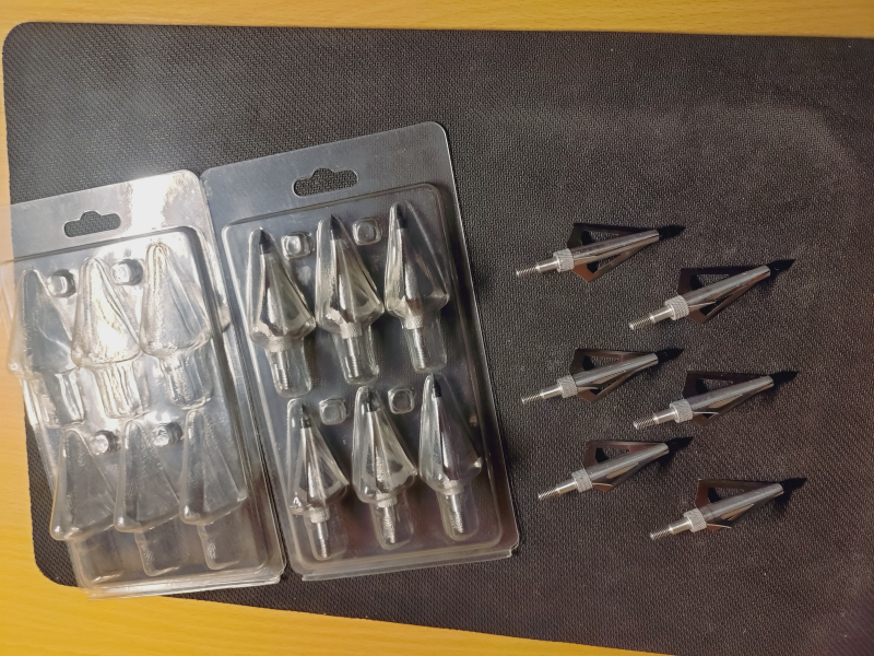 Verkaufe 12 unbenutzte neue Pfeilspitzen mit Klingen in Silber siehe Originalbild. Die 3D-Jagdspitzen sind mit 3 scharfen Klingen aus oberflächengehärtetem rostfreiem Stahl für Bogen und Armbrustpfeile geeignet. Seitenklinge zum Training entfernbar. Gewicht: 125 Grain, Gesamtlänge: ca. 7,2 cm, Schnittdurchmesser: ca.2,85 cm. Achtung Klingen sind sehr scharf!!! Verkauf erfolgt von privat ohne Gewährleistung und ohne Garantie Versicherter Versand nur in Deutschland ohne Inseln