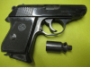 Leichte Taschenpistole mit Vorsatzlauf f. Pyromunition und 5-Schuss-Magazin