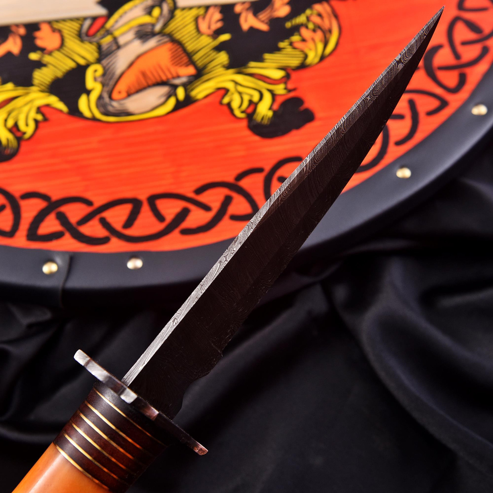 Damascus steel of this knife has high quality contents to give an excellent edge and sharp cutting abilities. Hardness of the blade of this knife is HRC 57-60 in the lab & been hand sharpened to a Sharp Edge.