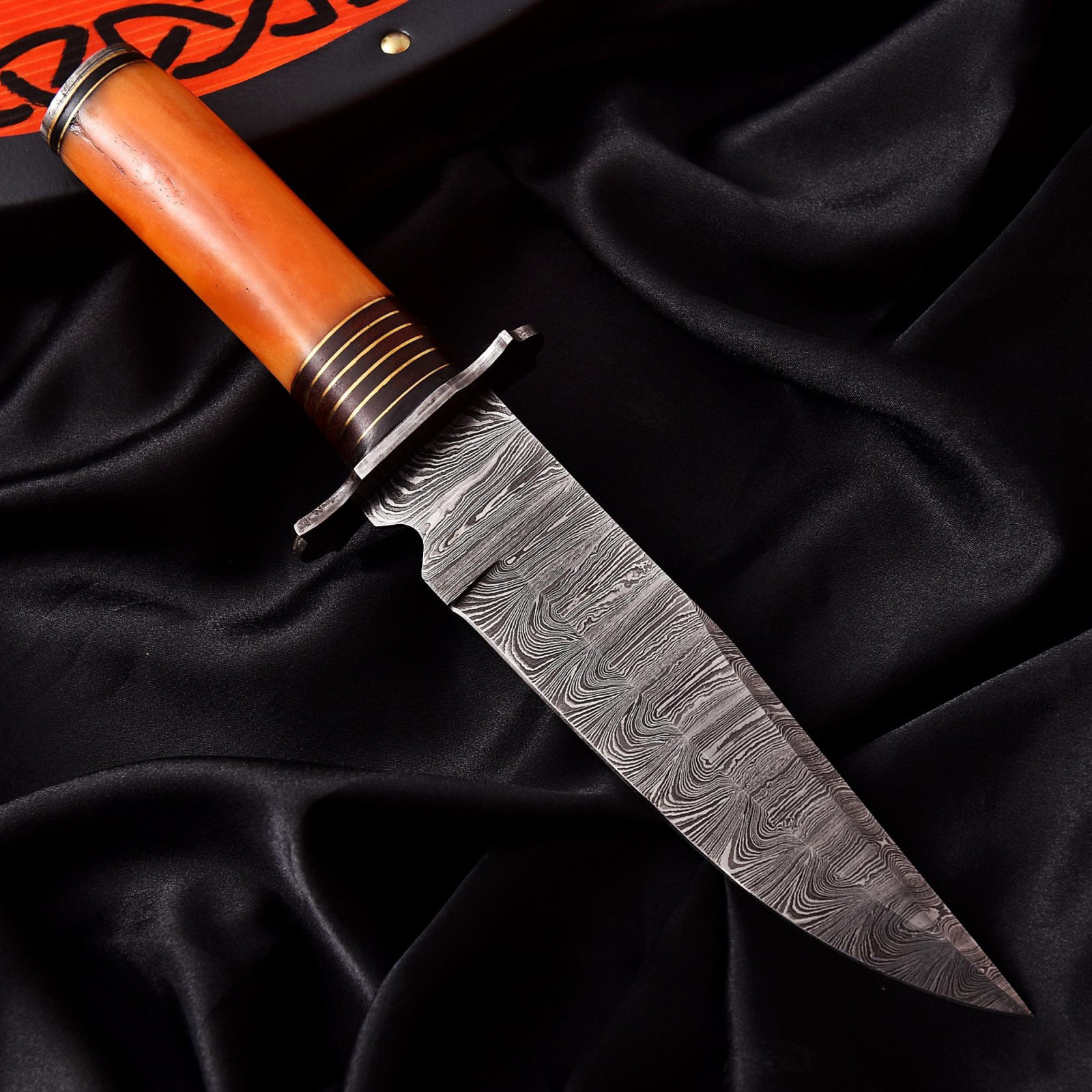Hier erhalten Sie ein handgeschmiedetes Bowiemesser / Jagdmesser aus Damast.