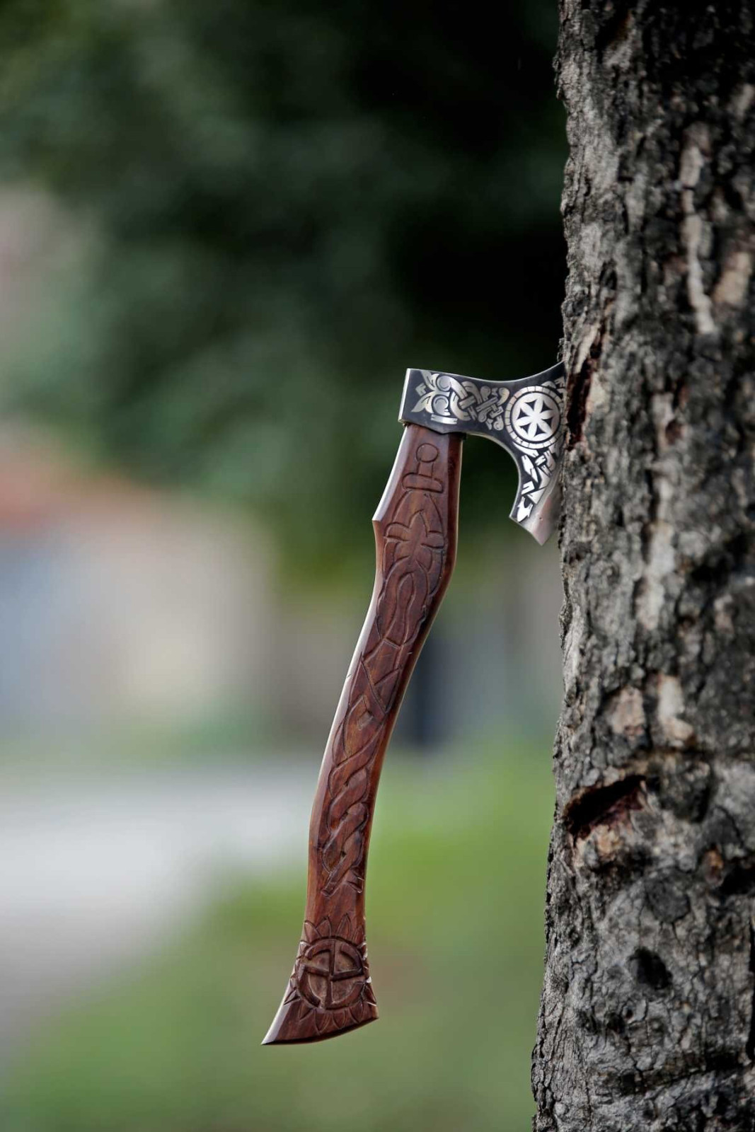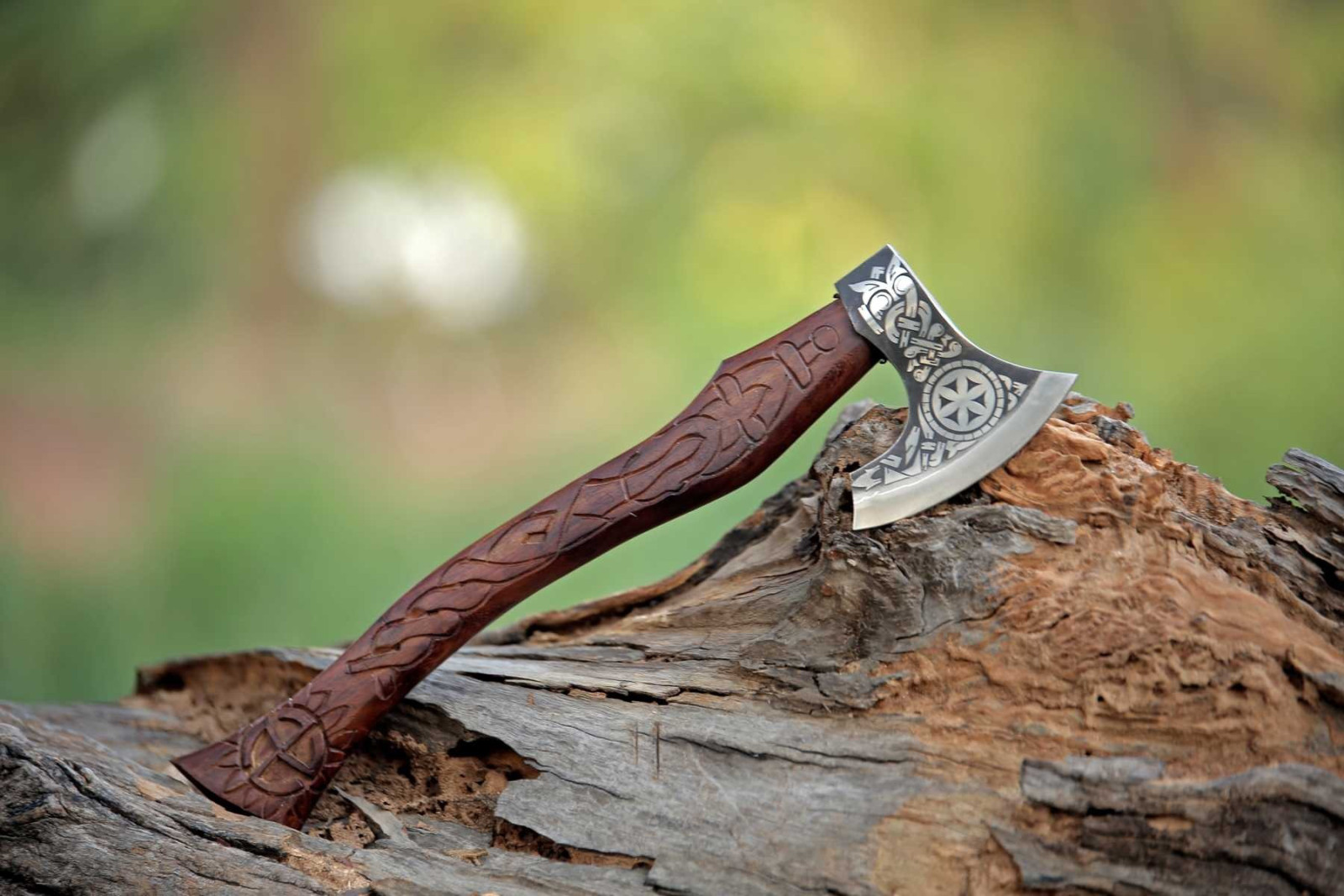 Bitte achten sie darauf, dass es keine maschinelle Verarbeitung, sondern eine von Hand angefertigte Axt ist, so dass es durchaus vorkommen kann, dass es minimale Abweichungen geben kann, wie z.B. in der Farbe, Maße oder auch Verarbeitung.