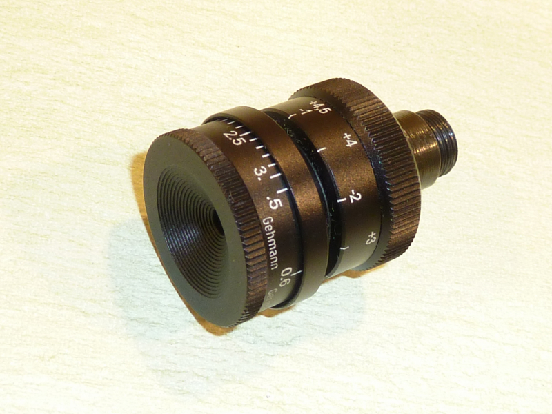 Verstellbare Optik mit einen Dioptrienausgleich von – 4,5 bis +4,5 Dioptrien.