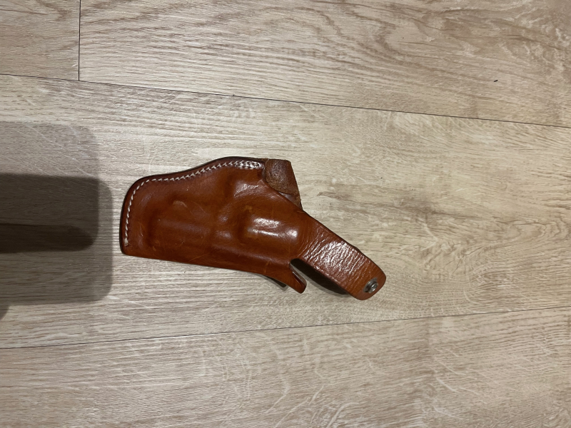 Ich biete ein gebrauchtes Holster von RADAR aus braunem Leder an. Das Holster nimmt Revolver mit bis 2" Lauflänge und der K-Rahmengrössen (zB Smith&Wesson 19, 15) auf und ist für Rechtshänder.