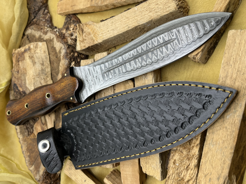 Über 200 Lagen Damast • Double-Edge Dagger • Walnussholzgriff • Full Tang • Inkl. Scheide