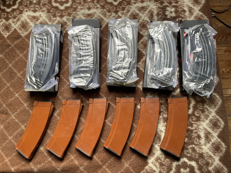 Original E&L AEG / SAEG Midcap AK Kalaschnikow Magazine, die Braunen sind gebraucht. Die Stahlblechmagazine sind nagelneu original verpackt. Top Qualität, was besseres im Airsoftbereich gibt es eigentlich nicht. Versand umgehend nach Zahlungseingang mit DHL.
