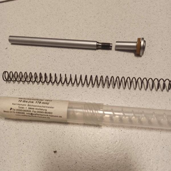 Verkauft wird eine lange Federführungs-Stange aus Edelstahl mit Puffer und Feder.s.Bild.