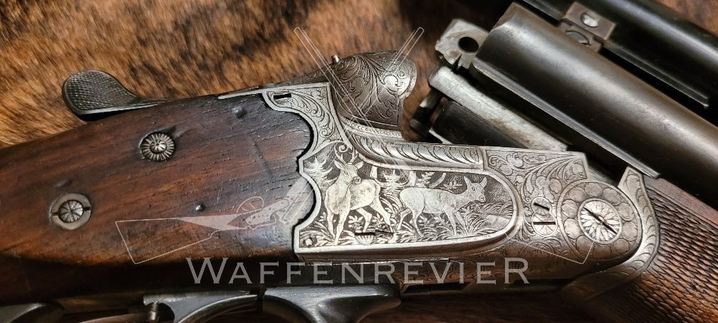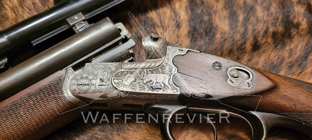 - Der Drilling hat leichtes Spiel in der Basküle und die Umstellung auf Kugel hakt. Daher wird er als "defekt" verkauft. Mit der Umstellung sollte es eine Kleinigkeit sein, und mit dem Spiel in der Basküle kann noch viel geschossen werden.