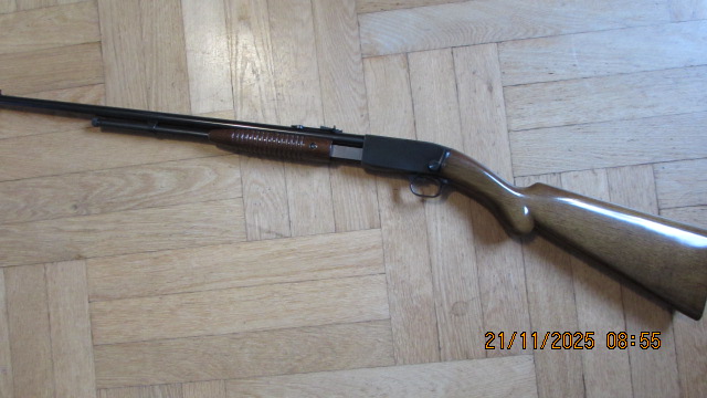 Kleine Vorderschaft Repetierbüchse, trifft auch auf 100m locker den Einsteckspiegel, Kimme (höhenverstellbar) und Korn, Röhrenmagazin für 11 Patronen , zerlegbar, Druckknopfsicherung im Abzugsbügel, gültiger belgischer Beschuss ist vorhanden. 1919 entwickelt, wurden zwischen 1922 und 1974 rund 150.000 Stk produziert.