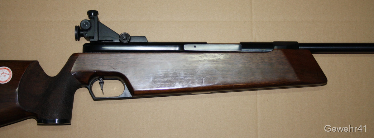 Aus gepflegtem Erstbesitz stammt dieses Luftgewehr Feinwerkbau Modell 300S im Kal. 4,5mm. Es hat nur leichte Gebrauchsspuren und wurde stets gut gepflegt. Lauf und Funktion einwandfrei. Aufgrund des Alters Verkauf ohne Garantie und Gewähr.
