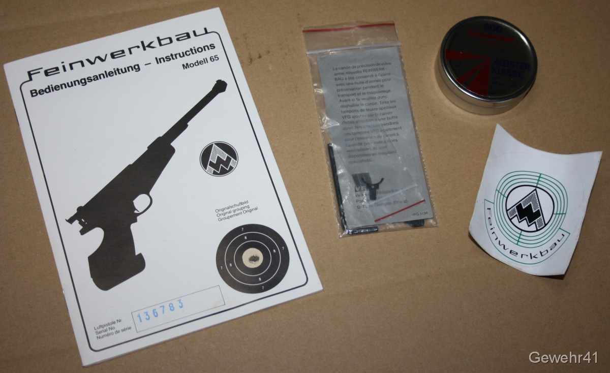 Aus gepflegtem Erstbesitz stammt diese Feinwerkbau Luftpistole Modell LP65 im Kal. 4,5mm. Sie kommt im dazugehören Koffer mit Zubehör, siehe Bilder. Lauf und Funktion einwandfrei. Verkauf ohne Garantie und Gewähr.