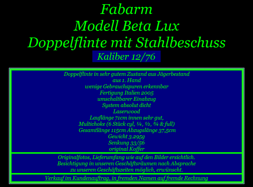 Artikel-ID: 20182177  •  ArtikelNr. des Verkäufers: 12404  •  Kategorie: Jagdwaffen > Flinten > Querflinten