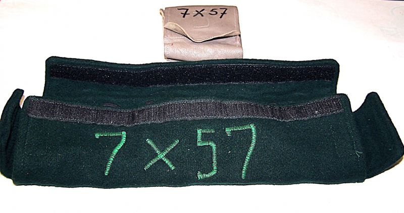 Eine elegante Filztasche für 10 Schrotpatronen und 9 Kugelpatronen 7x57 Mit Klettverschluß.