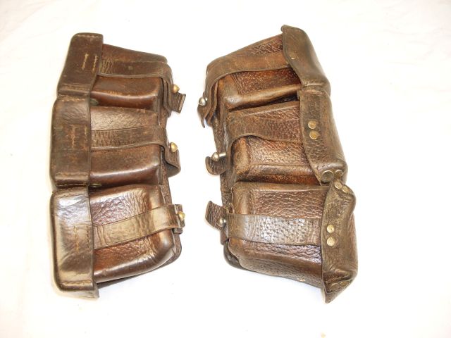 Sie bieten hier auf zwei Stück 3-teilige Patronentaschen der Finnischen Armee, Gestempelt mit " SA" Suomen Armeija und auf der Rückseite mit INT / 28 gefertigt aus kräftigen braunen Leder. Alle Stempel vorhanden. Taschen zeigen altersbedingte Trage und Gebrauchsspuren auf. Die Nähte sind fest und im originalen Zustand eine Tasche wurde mit Nieten nachgearbeitet. Zustand gemäß Fotos. Details und Fragen bitte vor Ablauf der Auktion klären. Farbabweichung durch Blitzlicht möglich. Privatverkauf kein Rückgaberecht und Gewährleistung. Der Bieter erklärt sich durch sein Gebot mit diesen Bedingungen einverstanden. Verkauf und Versand nur innerhalb von Deutschland mit Hermes Paket versichert.