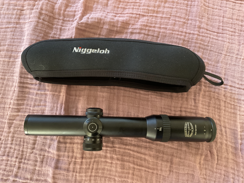 Verkauft werden soll ein klassisches Drückjagd Zielfernrohr von Schmidt & Bender für den Vergrößerungsbereich 1,25-4x20 inkl. Blaser Sattelmontage (müsste eine 70 Grad Prisma-Schiene sein). Absehen 1 mit beleuchtetem Zielstachel. Das Niggeloh-Cover lege ich bei.