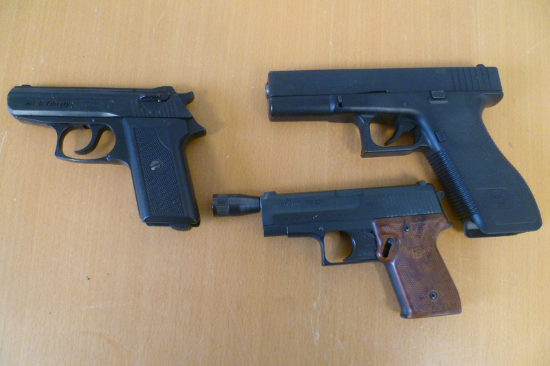 Konvolut von drei Schreckschusswaffen, zu denen wir leider kein Magazin haben. Alle drei wohl technisch in Ordnung, jedoch ohne passendes Magazin.