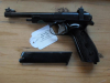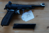 Margolin KK Sportpistole .22 l.r., gültiger Beschuß, Lauf blank, Lauflänge 150 mm, Gewicht 0,9 Kg, Magazin für 8 Patronen, im Original Holzkoffer mit allem Zubehör, u.a. Ersatzmagazin.