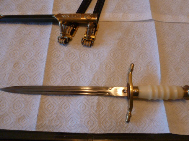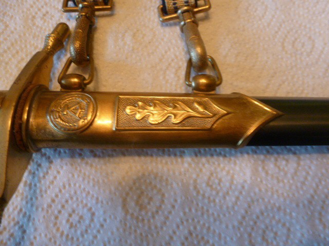 DDR NVA-Volksmarine Admirals-Dolch mit Gehänge, Knauf mit DDR-Emblem.Klinge mit Nr. 390
