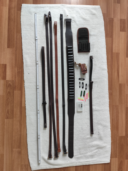 Ich verkaufe: Ein Konvolut an verschiedenen Gewehrriemen, Patronengürtel, Blaser Blitz-Kugelhalter, 2 HiViz-Magnet-Visiere mit verschiedenen Schienenadaptern und Leuchtstäben. Alles wie auf den Fotos zu sehen.