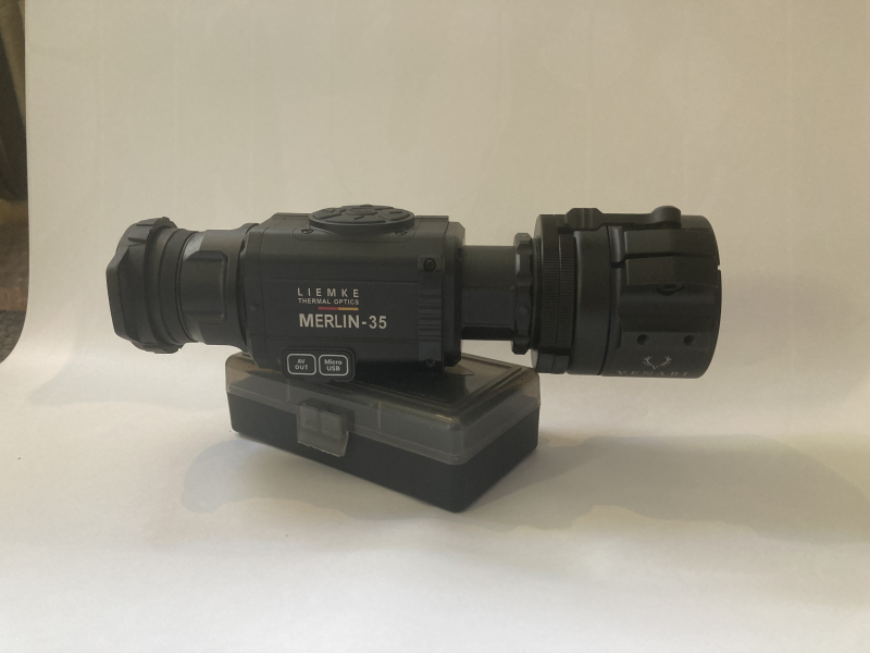 … steht ein neues Wärmebildvorsatzgerät Liemke Merlin 35. Das Gerät wurde lediglich auf einer Büchse in .308 eingeschossen. Bis lang kein jaglicher Einsatz. TOP Gerät von einem wirklich renommierten Hersteller. Der Adapter wird mit dazugegeben. Passend für ein Zeiss Duralyt 3-12x50 oder vergleichbare Optiken mit entsprechenden Aussendurchmesser.