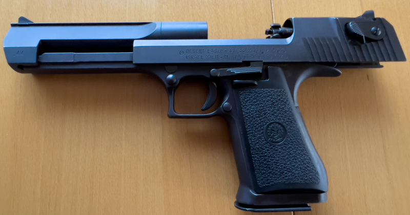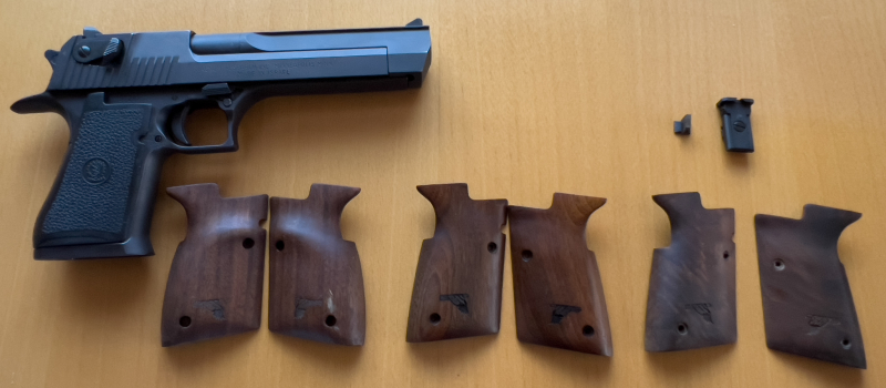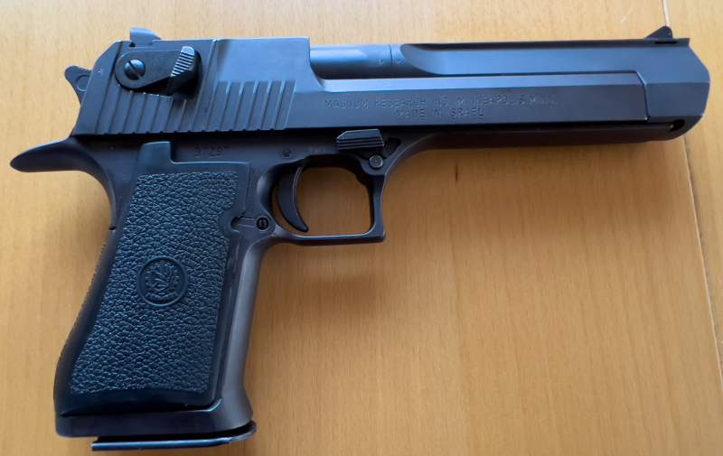 Angeboten wird eine halbaut. Pistole Desert Eagle aus Original IMI Fertigung im Kaliber .44 Mag mit zwei Magazinen. Die Waffe wurde im vergangenen Jahr auf starre Original-Visierung umgebaut und vom Büchsenmacher durchgesehen. Damit entspricht sie den Regularien z.B. als Dienstpistole beim BDMP. Für den Umbau auf andere Wettbewerbe erhält der Käufer 3 verschieden dicke Holzgriffschalen (Magnum Research) eine LPA-Visierung, Waffen und Magazin-Holster aus Leder alles im MR-Holzkoffer mit Zahlenschloss