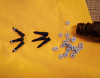 Verkaufe 100 Stück alte (neue), unbenutzte Hartmetallbolzen plus 100 dazugehöriger Schrauben für ein Bolzenschussgerät im Kaliber .22 Randzünder. Sie wurden vor langer Zeit zum Einsatz in dem Fix-Rammer Bolzenschussgerät kal. 22 der Firma Gebr. Neef verkauft. Der Bolzen wird mit dem weichen Gummi Ring an der Spitze bestückt, laut Aussage eines Sachkundigen zur Stabilisierung im Lauf , das klingt einleuchtend und deshalb gibt es die Ringe ○120 Stück ○, jetzt wo ich also weiß wofür die da sind in der kleinen Flasche dazu. Der Fix-Rammer hatte einen offenen Lauf und der Bolzen wurde ins Patronenlager geschoben, die cal.22 Kartusche hintendran, Lauf wurde eingeschraubt und dann konnte er je nach Ladung in verschiedene Baustoffe, auch in Stahlplatten / Träger eingeschossen werden. Soweit ich weiß kamen diese Setzgeräte auch im militärischem Schiffsbau zum Einsatz.