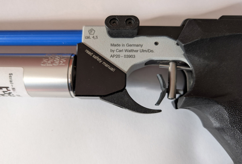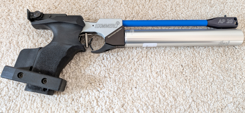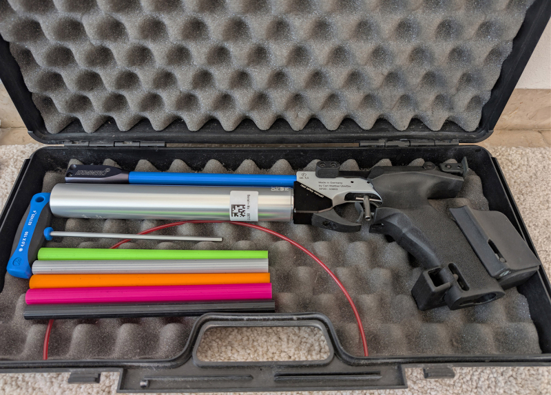 Wegen Beendigung meiner Mitgliedschaft im Verein gebe ich ab - technisch und optisch einwandfrei, gepflegt, trocken gelagert, wenig benutzt: Hämmerli Match-Luftpistole AP20, Visierung und Abzug werksseitig, nichts verändert. Original-Koffer, 1x Pressluftkartusche (bis 2034 nutzbar),Gehmann Irisblende, Farbige Läufe, Imbus, Handbuch. Gratis dabei bei Selbstabholung: ein Schusskasten, Diabolos, Scheiben. Die Hämmerli AP20 ist ideal für ambitionierte Sportschützen, Vereine oder den Einstieg in den Wettkampfbereich.