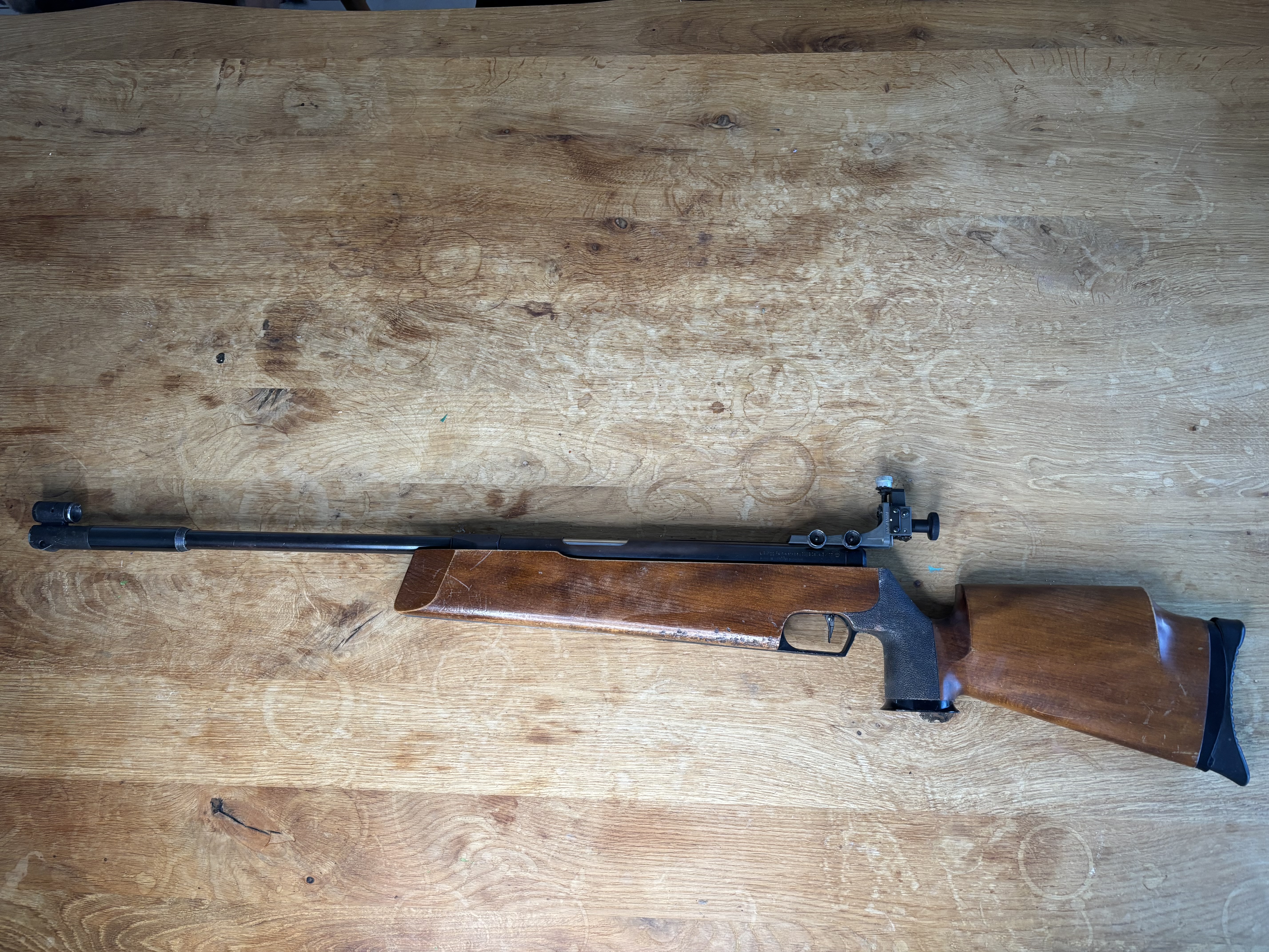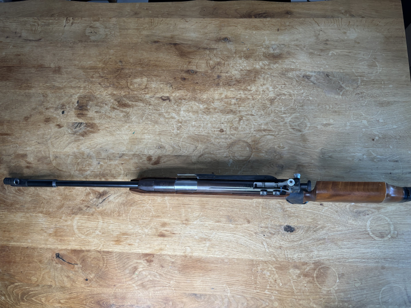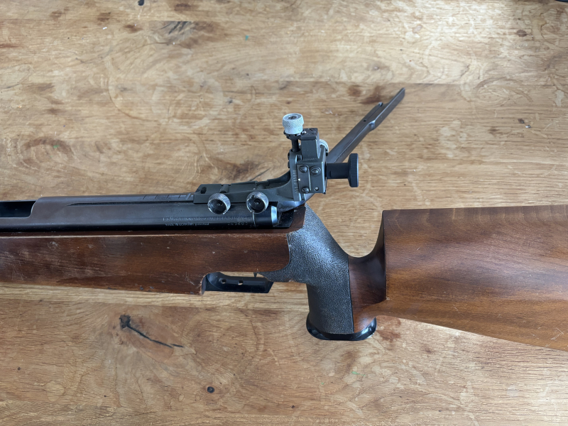 Zum Verkauf steht ein Feinwerkbau 300S Match-Luftgewehr (Kal. 4,5 mm / .177 Diabolo) aus Privathaushalt (Nachlass). Das Gewehr wurde nicht als Vereinsgewehr verwendet und wurde pfleglich behandelt. Seriennummer: 243862, F im Fünfeck vorhanden, mit UIT-Schiene am Vorderschaft (zum Anbringen von Handstopps oder Riemen). Diopter in einem guten Zustand. Das Gewehr funktioniert tadellos und hat Gebrauchsspuren. Die originale Brünierung ist noch gut. Technisch Zustand: Funktioniert und schießt gut. Dichtungen scheinbar in Ordnung, aber unbekannt, wann sie zuletzt gewechselt wurden. Ein interessanter Posten für Sammler, Liebhaberwerte oder Kenner, die Freude am Entdecken haben. Das Modell 300S zeichnet sich durch seine stabile Bauart aus und ist eigentlich unverwüstlich! Ein ehrliches Stück, zum guten Preis. Es handelt sich um einen Privatverkauf.