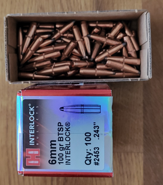 Verkauft werden 81 Stück Hornady Interlock BTSP 6mm/.243" 100grain, wegen Kaliberwechsel.