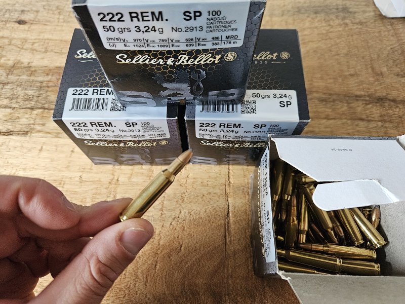Angeboten werden 357 schuss 222 Remington Teilmantel Patronen von Sellier und Bellot.