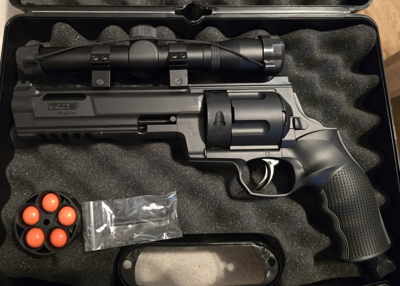 Hallo, biete hier eine Umarex HDR68 Gen.2, CO2. Cal. 68 ram, schwarz. Die waffe ist in einem neuwertigen zustand, keinerlei gebrauchspuren. Wurde nicht geschossen, ist dicht. Mit dabei ein koffer, und Pistolenzielfernrohr, 2 laderinge. Waffe hat kein Blowback und ist aus Kunststoff. Waffe wurde sehr gepflegt.