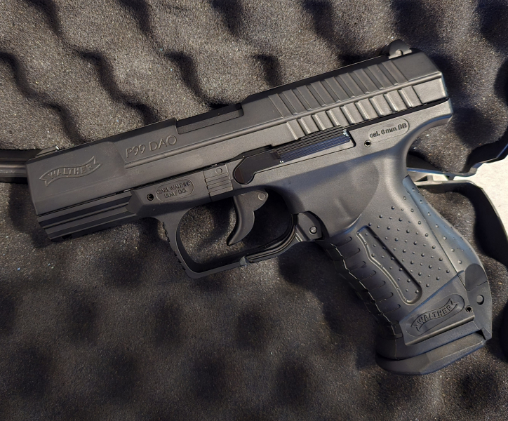 Hallo, biete hier eine Walther P99 DAO, CO2, 6mm BB, schwarz. Die waffe ist in einem neuwertigen zustand, keinerlei gebrauchspuren. Wurde nicht geschossen, ist dicht. Mit dabei ein koffer, . Waffe hat Blowback und ist aus Metall. Waffe wurde sehr gepflegt.