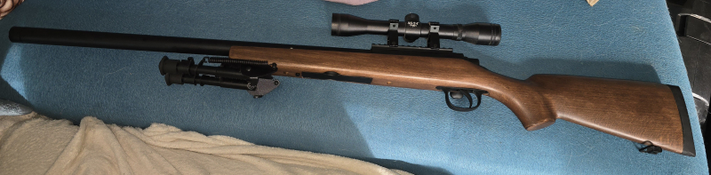 Hallo, biete hier eine K&Z Scharfschützengewehr feder, 6mm BB, schwarz mit Echtholzschaft. Die waffe ist in einem sehr schönen zustand, hat minimale gebrauchspuren. Wurde wenig geschossen. Mit dabei ein Zielfernrohr. Waffe hat kein Blowback und ist aus Metall und holz, Waffe wurde sehr gepflegt. Hat am laufende ein gewinde mit kappenschutz für schalldämpfer z.b.