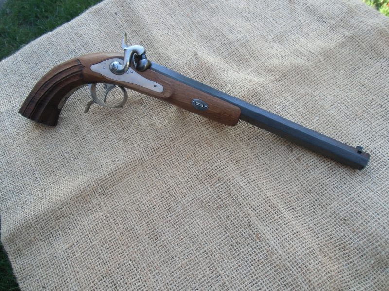 Aus einem Nachlass biete ich an: Perkussionspistole „Mang in Graz“ von Pedersoli, cal. .38. Frühe Fertigung mit 500er Seriennummer. Laufinneres spiegelblank (… und jetzt selbstverständlich wieder gut eingeölt!) mit 7 Zügen, Rechtsdrall. Eine .375er Kugel geht gerade noch rein und raus und sollte wohl die richtige Wahl sein. Neueres Piston mit Kupferpaste eingesetzt, Gewinde einwandfrei. Höhenverstellbare Kimme; im Schwalbenschwanz verschiebbares Korn. Rückstecher einstellbar. Eine -untere- Kante des Laufhaltekeils ist abgebrochen, kaum sichtbar, unerheblich. Der Lauf wurde wohl schon einmal neu „brauniert“ und hat ein antikes, authentisches rost-braun Finish. Sehr schnelles Schloss mit kurzem Schloßgang. Insgesamt macht die Pistole einen gepflegten, nicht viel geschossenen Eindruck. Eine ebenfalls hochwertige Steinschloßpistole finden sie in meiner weiteren Auktion hier. Bieten Sie von außerhalb der BRD ... dann fragen Sie bitte VORHER nach den höheren Versandkosten. Paypal-Zahlung möglich. Privat-Auktion; keinerlei Garantie, Gewährleistung, Rücknahme oder sonst irgendwas ... Bieten/Kaufen Sie bitte nicht, wenn Sie dies nicht akzeptieren, danke.