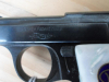 Walther Modell 9, Kaliber 6,35 mm Browning, gültiger Beschuß, Lauf gut, in einer Art Luxusausführung mit perlmuttartigen Griffschalen, die rechte Griffschale mit Ausbruch, Brünierung 98%.