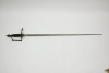 Degen, Frankreich, Consulat, Marine, vor 1804, Bronzegefäß, halbrundes Stichblatt mit auf Anker sitzender Aphrodite auf Nordstern zeigend, Griffbügel in Form einer griechischen Säule mit Kapitell in urnenförmigen, flachgedrückten Knauf endend, Knauf beidseitig graviert mit Ornamenten, Lektorenbündeln, Kriegstrophäen und Helm verziert, geriffeltes Ebenholz-Griffstück mit Perlstabkanten aus Bronze, spätere Dreikantklinge, Gefäßalter grüner Patina, Gebrauchsspuren, selten. L: 98 cm.