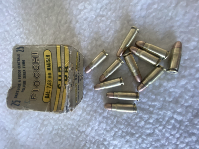Verkaufe hier 11 Schuß von Fiocchi Pistolen Munition im Kaliber 7,63 Mauser.