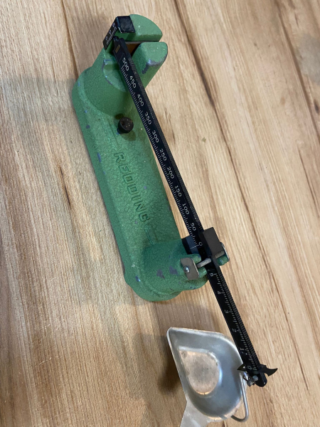 Zur Auktion kommt eine Redding Pulverwaage aus einem Nachlass wie abgebildet.