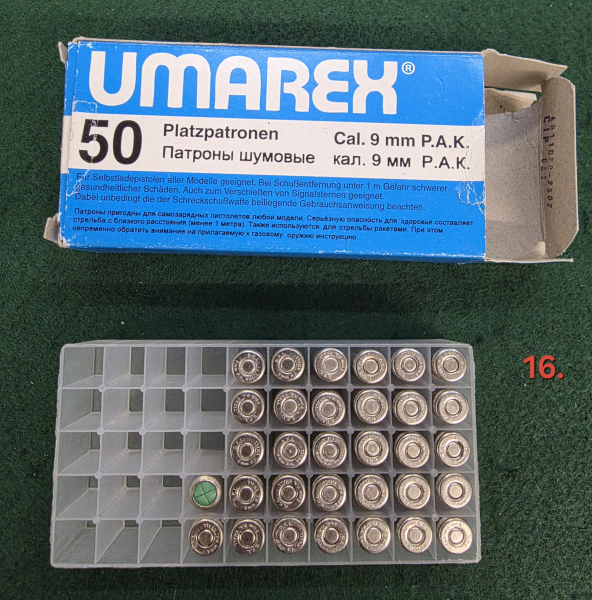16.) Umarex Kartuschen Konvolut 9mm PAK SRS Schreckschuss