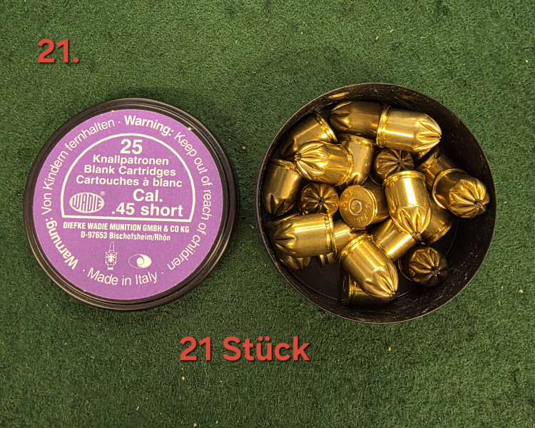 21.) Wadie Kartuschen Platzpatronen .45 Short RK SRS Schreckschuss